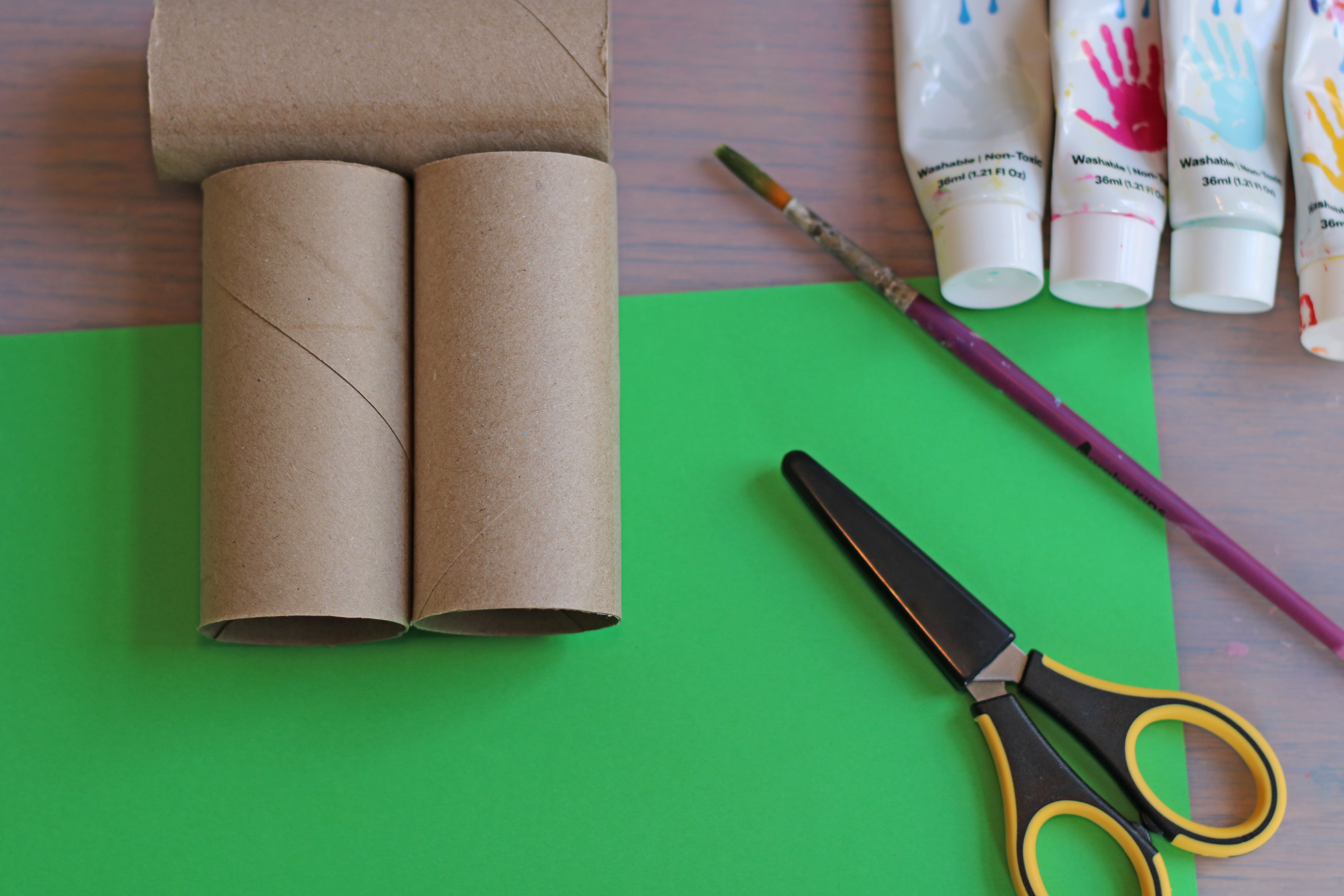 Nimm drei Klopapierrollen zur Hand. Eine Rolle bleibt rund und wird später der Kopf des Hasen.